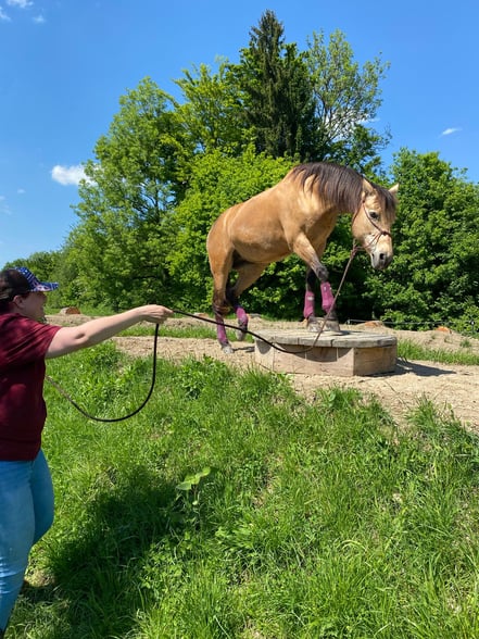 In der Erarbeitung der Hindernisse ist die Bodenarbeit das essentielle Trainingselement. Hierbei werden die Pferde „von außen“ am langen Führseil in das jeweilige Hindernis hineingeschickt. Indem sie es „alleine durchschreiten“ werden Ihre natürlichen Sinnesleistungen und Reflexe als Lauf-und Fluchttier seitens des Menschen nicht unnötig gestört. Eigenverantwortlich die jeweiligen Aufgaben anzugehen, schult sowohl Gehorsam als auch Vertrauen in den Menschen als Anführer. Zudem lernen sie, selbst auf das Hindernis zu achten. Dabei senkt sich der Kopf des Pferdes, es beginnt das Hindernis zu inspizieren (beriechen, scharren, abkauen) und sich seinen Weg zu suchen. Adapting the trail, sich dem idealen Weg anpassen, wird das genannt. Das Ziel der intensiven Bodenarbeit im Extreme Trail ist, dem Partner Pferd in einem Lernprozess bestimmte erwünschte Verhaltensweisen zuverlässig und abrufbar beizubringen.